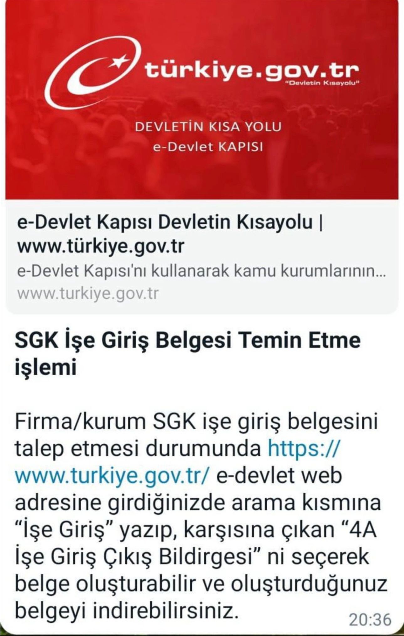 SGK İşe Giriş Belgesi Temin Etme İşlemi